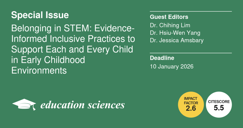 We’re excited to announce a special issue of Education Sciences on Belonging in STEM: Evidence-Informed Inclusive Practices in Early Childhood.